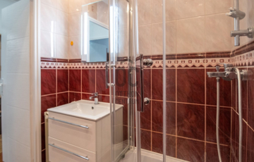 - Zuhanyzós fürdőszoba, mosógép elhelyezési lehetőséggel