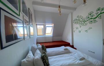 A teljesen bútorozott hálószobák kényelmes ágyakkal és bőséges tárolóhellyel rendelkeznek. Az egyik szobában egy kényelmes kanapé is helyet kapott, amely ideális pihenéshez, olvasáshoz a nap végén.