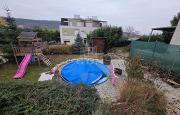 A saját telken medencével, kerti játszóvárral és kerti tárolóval!
