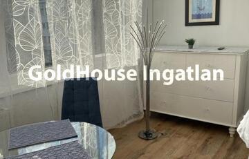 Műanyag nyílászárók, nagyon szép burkolatok, igényes bútorok vannak bent. A szoba déli fekvésű, légkondis, három nagy ablakának köszönhetően világos. A kádas fürdőszoba és a toalett külön helyezkedik el. Berendezés: ágy, TV, szekrény, komód, asztal, székek, a konyhában gáztűzhely, konyhabútor, hűtő, edények, mosógép, és egyéb kisebb szobabútorok, kiegészítők.
