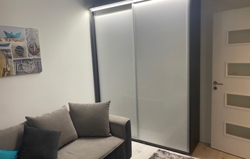Az ingatlan bútorozott, háztartási gépekkel felszerelt. A konyhában beépített sütő, mikrohullámú, kerámialapos tűzhely, mosogatógép. A lakás nappali + 2 hálószoba, erkély, konyha, fürdőszoba helyiségekből áll. A wc és a fürdőszoba egy helyiségben található. Az ingatlan klimatizált, alumínium redőnnyel felszerelt.