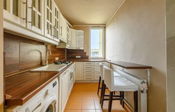 A lakás egy lift nélküli társasház 4. emeletén található, ennek köszönhetően rendkívül világos és csendes.