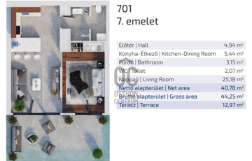 Lakás adatai – br. 45 m² + 13 m² terasz: