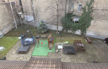 A hálószoba a csendes belső udvarra néz – ideális nyugodt pihenéshez.