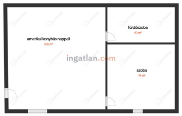 A lakótérben nappali, 1 szoba, amerikai konyha, zuhanyzós fürdőszoba, wc-vel található.