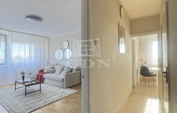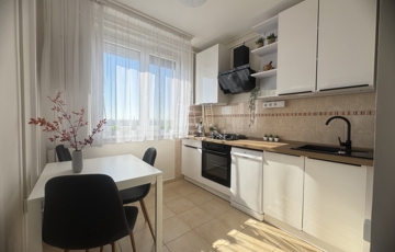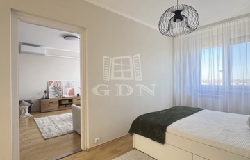 A 2 szobás frissen felújított lakás egy karbantartott, liftes panelház 7. emeletén található, a magas emeletnek köszönhetően minden helyisége nagyon világos, tágas és modern életteret biztosít leendő lakója számára. A hőszigetelt ablakok redőnnyel felszereltek, és minden helyiségben van szúnyogháló. A bejáratot új, biztonsági bejárati ajtó védi. A szobákban laminált parketta, a konyhában, kamrában és a vizes helyiségekben hidegburkolat van. A nappaliban hűtő-fűtő klíma található, amely a lakás körbejárhatóságának köszönhetően minden helyiségben kellemes hőmérsékletet biztosít a meleg napokon.