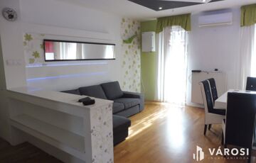 Az ingatlan Szeged belvárosa és a Pick aréna közötti szakaszon található rendkívül jó elhelyezkedéssel,hiszen pár perc távolságra található minden,Spar,Tescó Étterem,Trafik,OMV benzinkút,busz és trolimegálló.A lakás 64 négyzetméteres és nappali plusz két szoba kialakítású.A második emeleten található 10 négyzetméteres terasszal rendelkező ingatlan,részben bútorozott,hiszen a két hálószobában ágy nem áll rendelkezésre.Kényelmi szempontból fontos,hogy a fürdőszoba és a WC külön került kialakításra,illetve a nappaliban a nagy tér miatt az étkező asztal lazán szellősen használható.