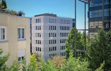 District 12 of Budapest, in the heart of Southern Buda, Németvölgy, MOM-Residential Park, 3rd-floor of the building located in the RESIDENTIAL PARK surrounded by GREEN GARDEN, EXCLUSIVE 2 ROOMS (21 sqm living and dining room area + 11,3 sqm bedroom) approx. 51 sqm SUNNY and AIR-CONDITIONED LUXURY APARTMENT, with PANORAMIC TERRACE (approx. 5,2 sqm) opening from living room and bedroom, for RENT.