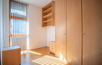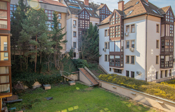 Az ablakok a ház kertje felé néznek, ennek köszönhetően rendkívül nyugodt a lakás.