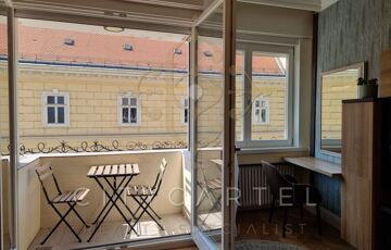 A nappaliból egy napfényes nagyszobából (20 nm) léphetünk ki a sétáló utcára és egy belvárosi kis templomra rálátást kínáló apró 1,5 nm-es kis teraszra.