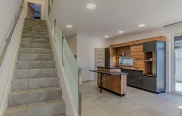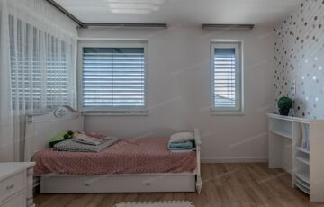A földszinten tágas, világos amerikai konyhás nappali biztosítja a családi élet központját, közvetlen terasz- és kertkapcsolattal. Ezen a szinten egy hálószoba, fürdőszoba és kamra is helyet kapott.